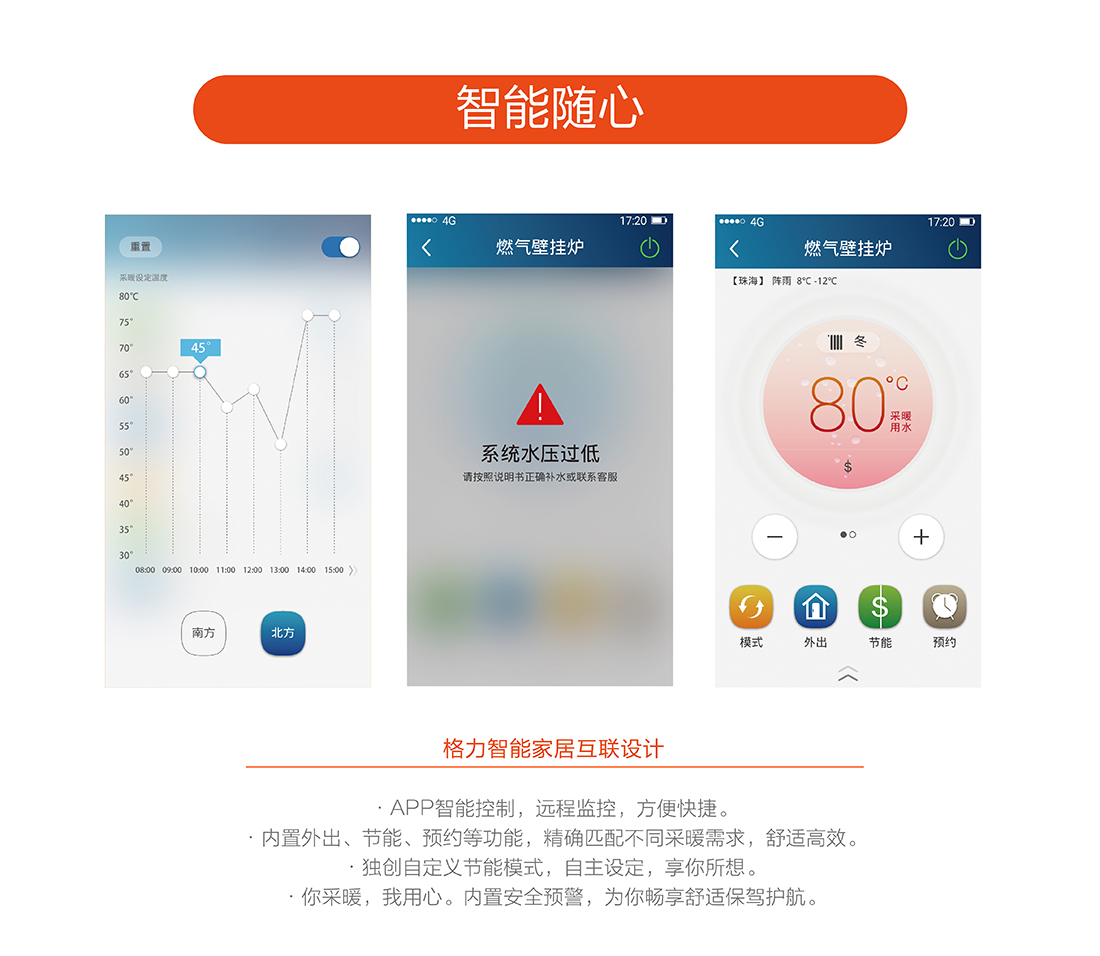 全預(yù)混燃燒結(jié)合雙寬域功率調(diào)節(jié),節(jié)能恒溫,溫差在±0.5℃之間,保證熱水四季恒溫快速出熱水,減少水流浪費(fèi),生活水溫度35-60℃,采暖水溫30-80℃