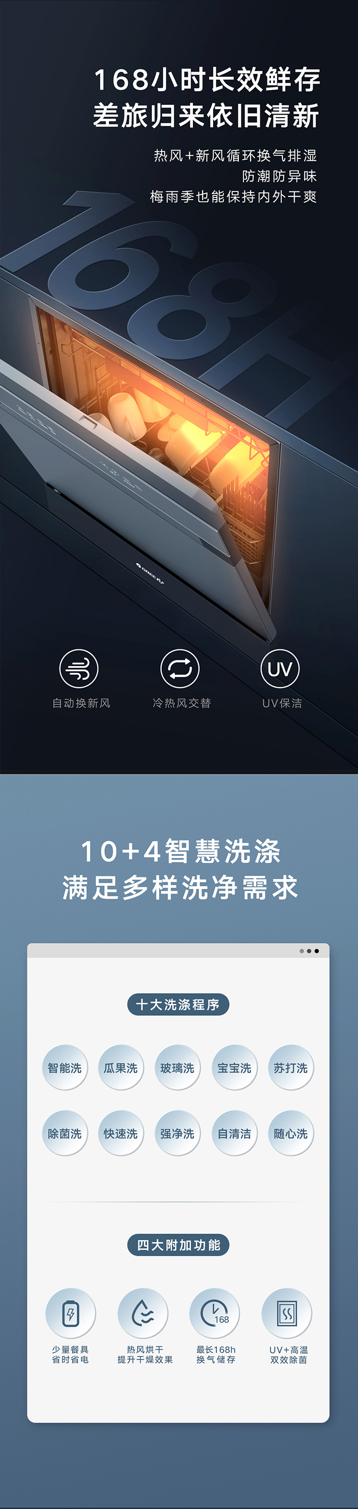 格力健康洗洗碗機(jī),專為中國(guó)家庭設(shè)計(jì);洗除排烘存更全能;熱風(fēng)循環(huán)烘干,內(nèi)腔餐具都干爽