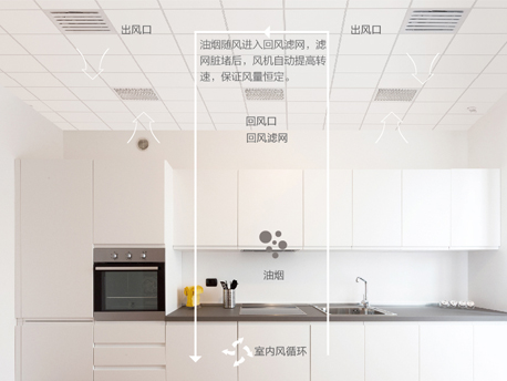 機(jī)組可智能檢測風(fēng)口油煙臟堵程度,并自動匹配風(fēng)機(jī)轉(zhuǎn)速,保證風(fēng)量恒定,舒適不衰減。
