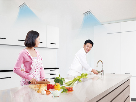 情侶送風(fēng):廚享特設(shè)雙出風(fēng)口,開啟時,兩個風(fēng)口從不同位置出風(fēng),增加夫妻搭檔烹飪的樂趣。 定點(diǎn)送風(fēng):設(shè)置定點(diǎn)送風(fēng),直吹人體,能快速降低燥熱感,讓您享受清涼烹飪,同時避免大范圍送風(fēng)產(chǎn)生的能耗。