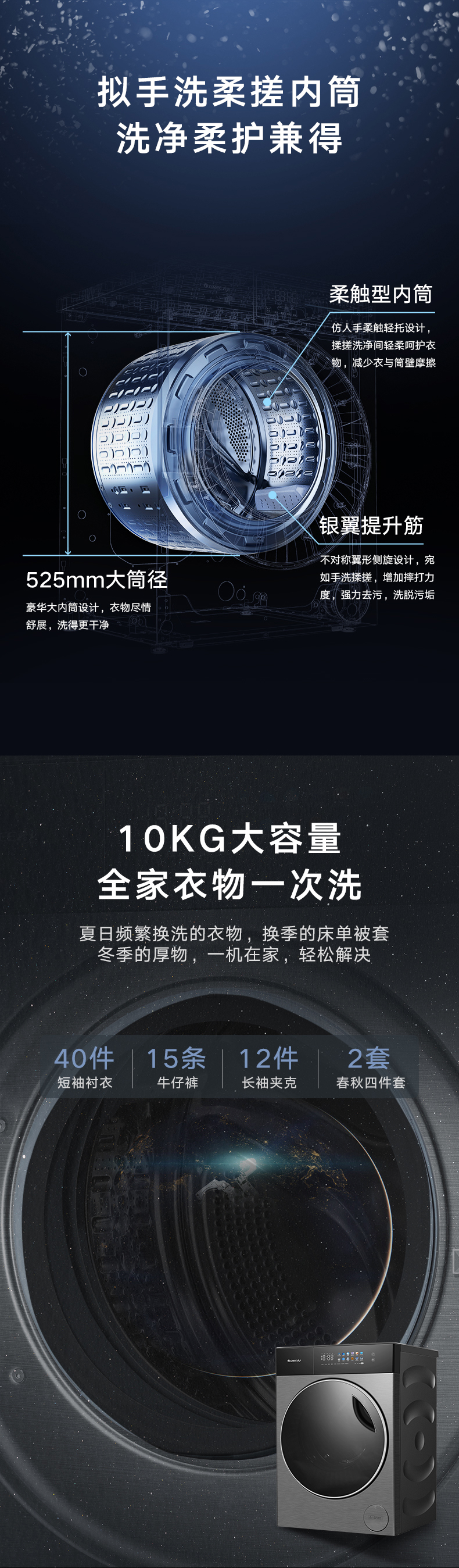 AI智能感應,臟污一鍵洗凈。AI慧眼識污,智能判斷洗滌凈度,洗凈比高達1.1