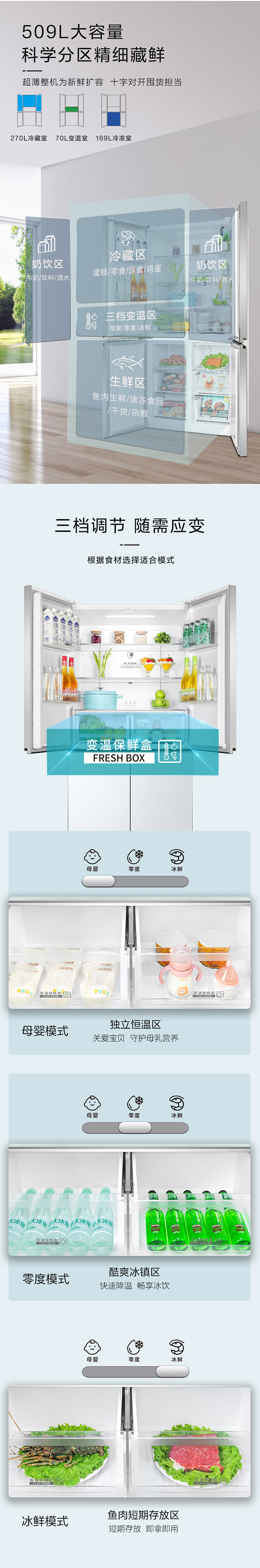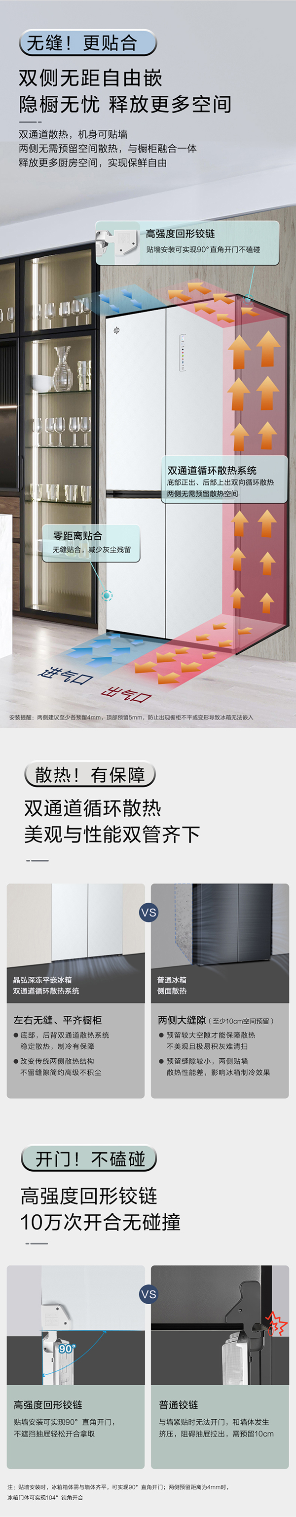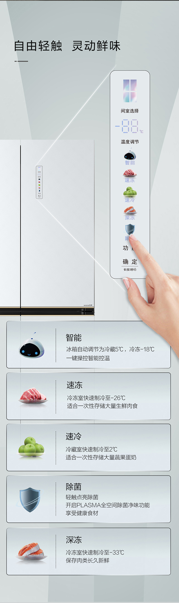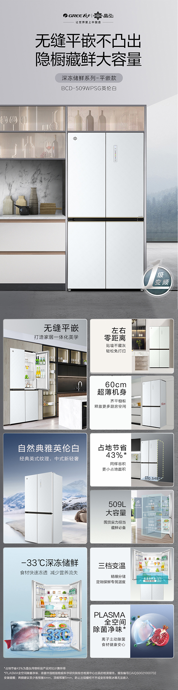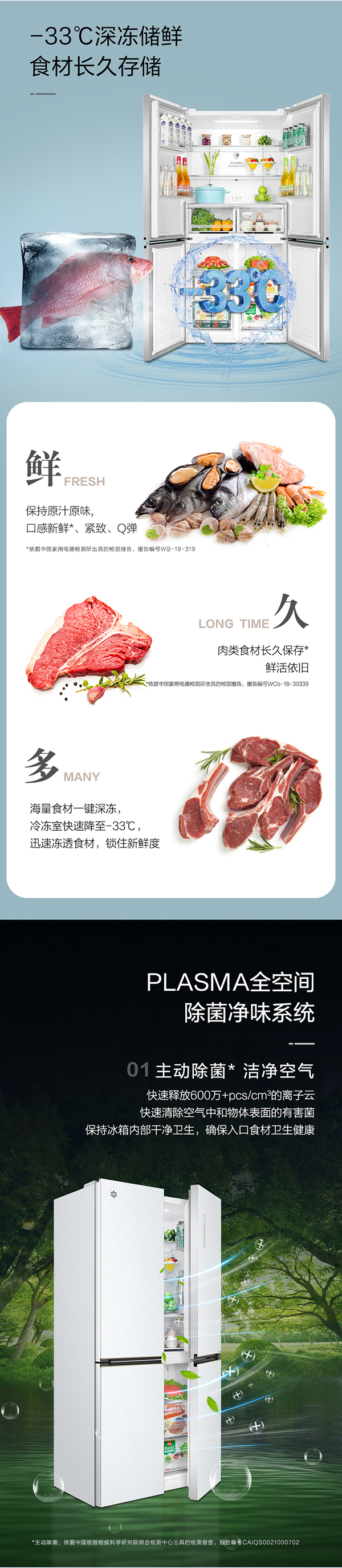 -33攝氏度深凍儲鮮;PLASMA全空間除菌凈味;平齊不凸出;雙通道循環(huán)散熱
