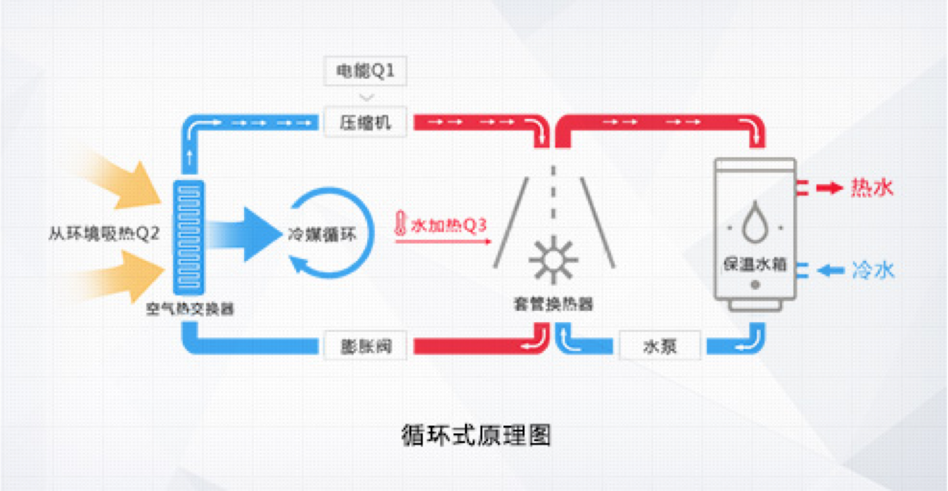 格力空氣能熱水器,傳承空調(diào)核心科技,以消耗一部分電能為補(bǔ)償,通過熱力循環(huán),從周圍環(huán)境的低品位能源(空氣源)取得熱量,通過壓縮機(jī)將其輸送至冷凝器,釋放給水箱內(nèi)的水將其加熱。它的工作原理與空調(diào)制熱時(shí)的原理相類似,只是空調(diào)是 從自然環(huán)境中吸取熱量,供給室內(nèi)空氣,而空氣能熱水器是以這部分熱量加熱生活熱水,其能效比是電熱水器的4倍,是燃?xì)鉄崴鞯?倍,是太陽能熱水器的近2倍,是一種新型的高效、節(jié)能、環(huán)保的熱水器產(chǎn)品。一度電的付出,4倍熱量的收獲!